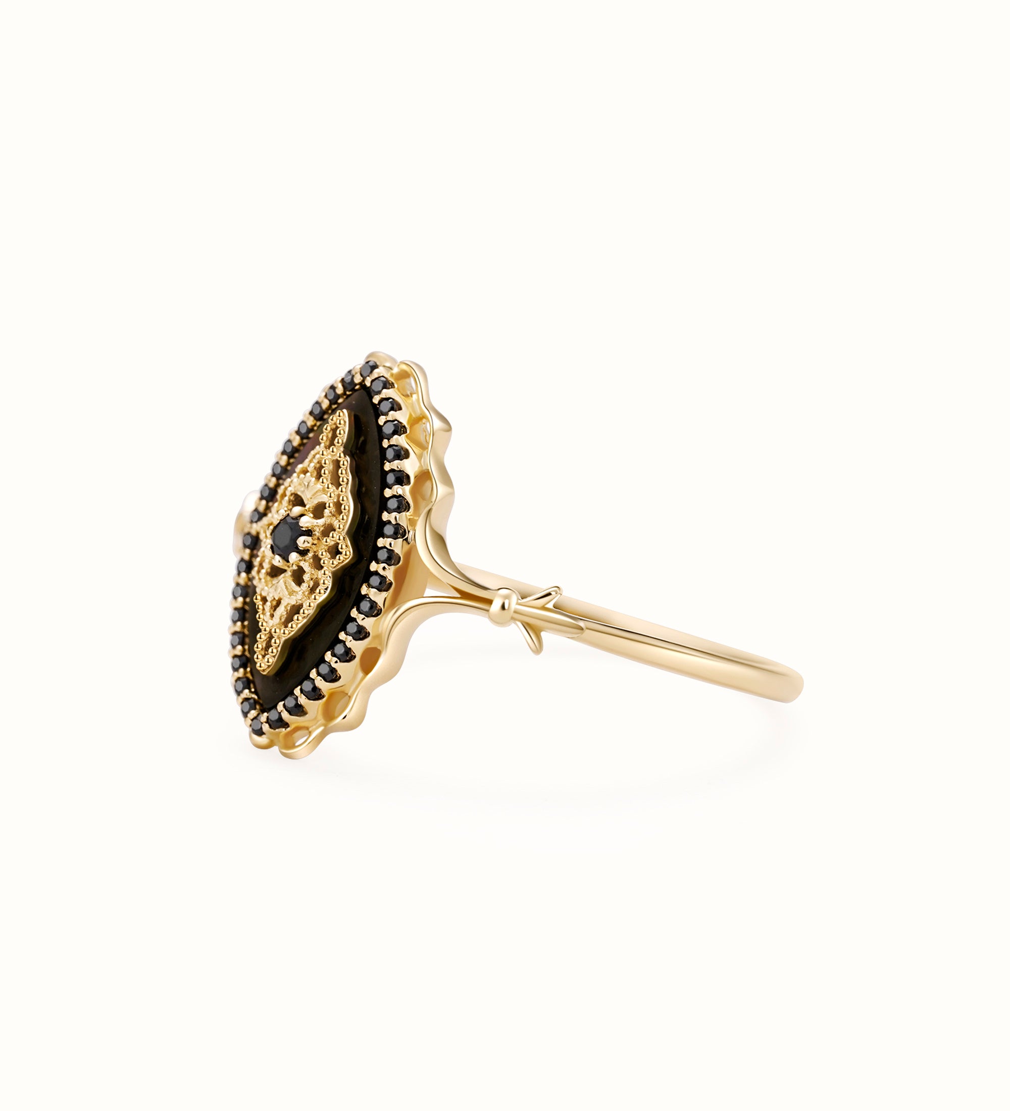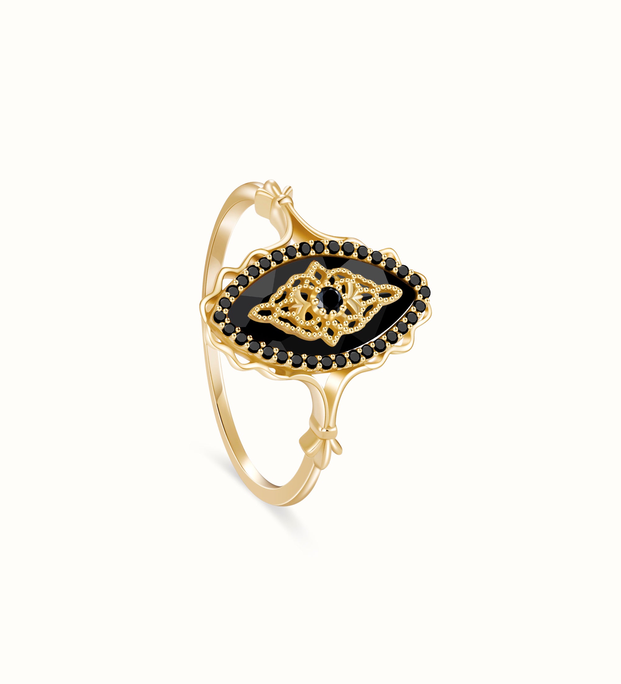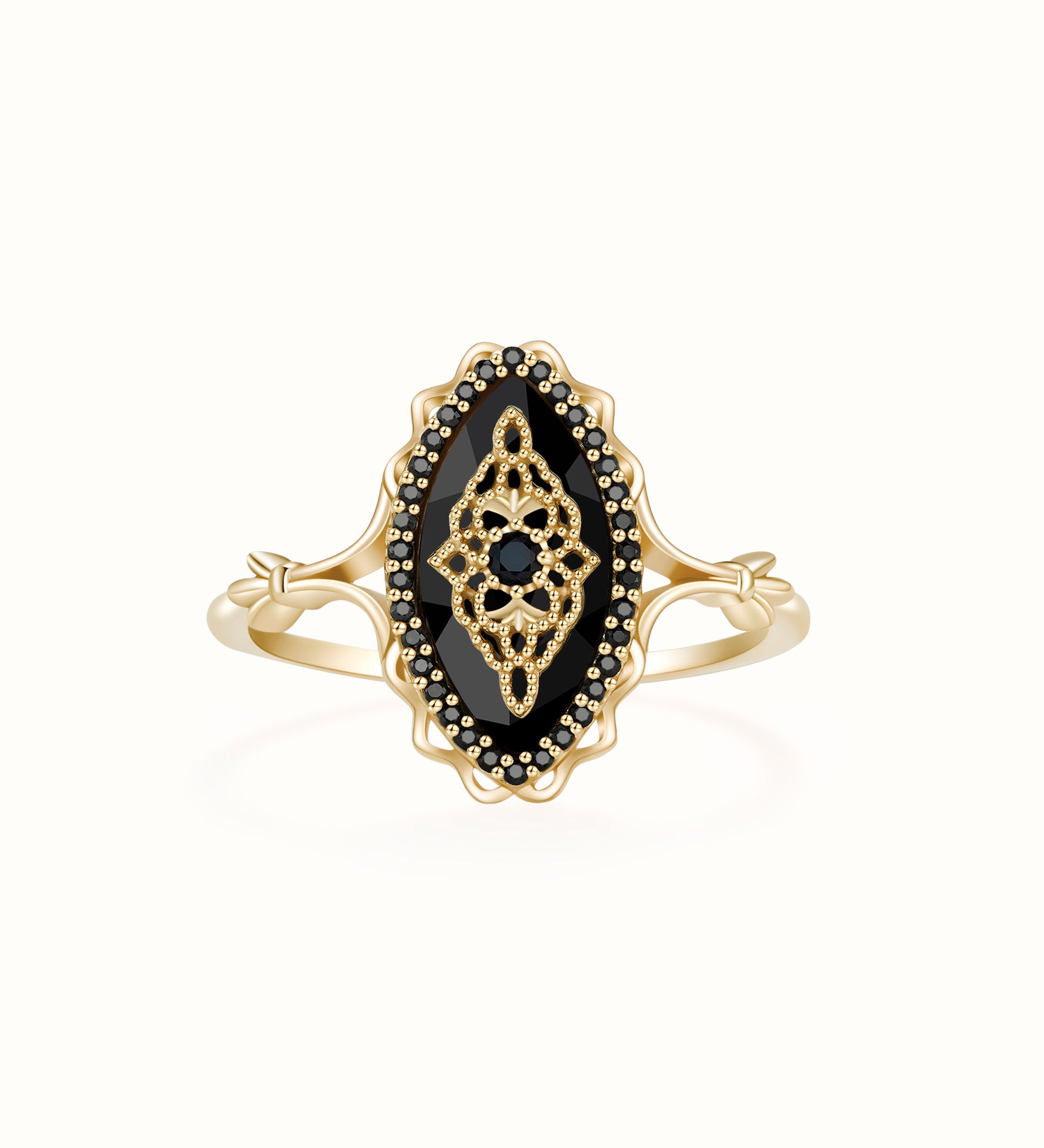 Ideal for any occasion, the Black Onyx Ring brings a touch of vintage charm to your everyday style or formal event ensemble. Its timeless design transitions seamlessly from a casual outing to an elegant evening affair. Meticulously crafted with intricate details, this ring is a piece you'll treasure in your collection for years to come.