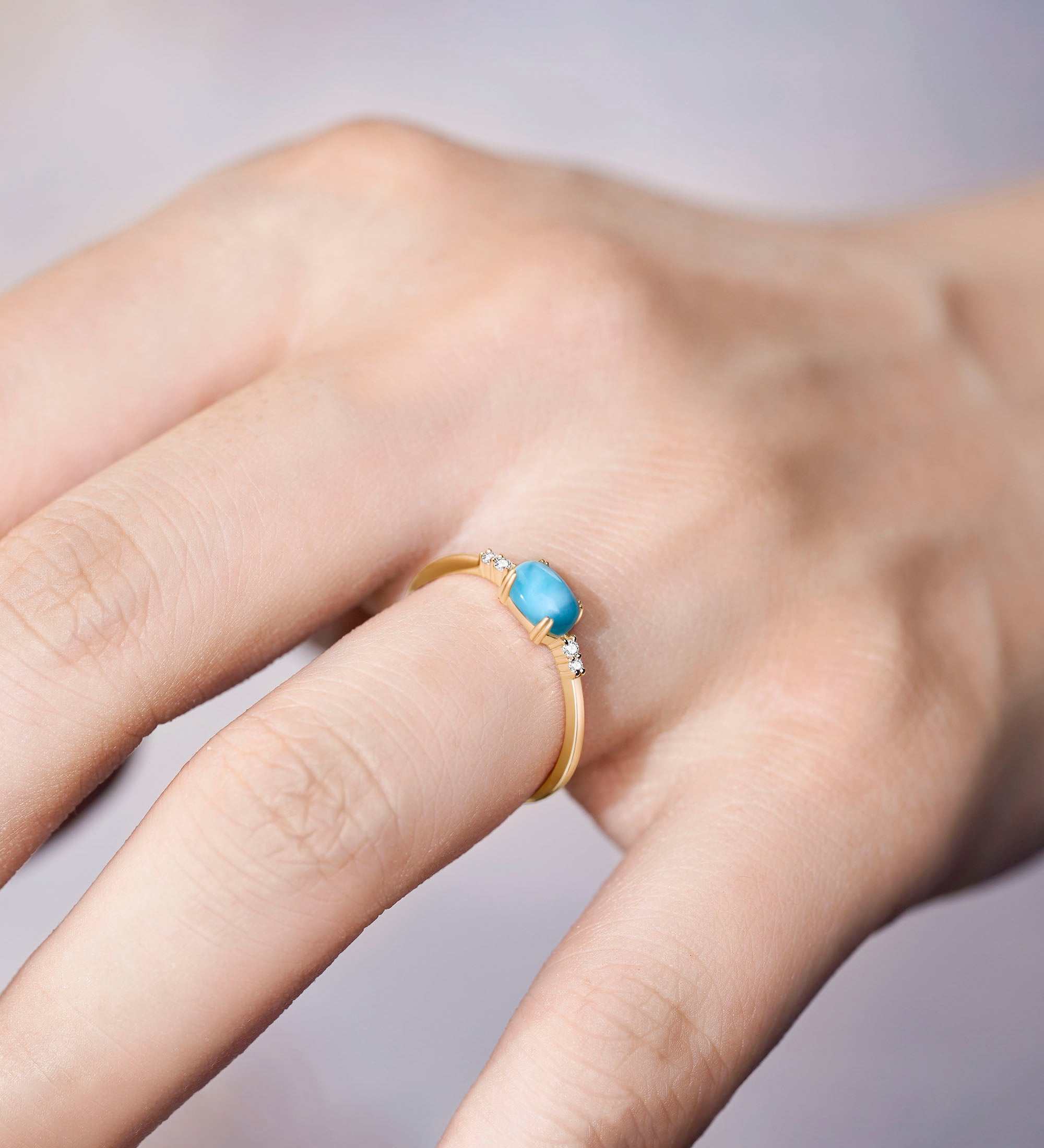 Feel the need for elegance, calm, and luxury in every moment with this stunning Larimar ring. Don’t miss out on adding this must-have piece to your collection! Explore more of our solid gold rings collection here.