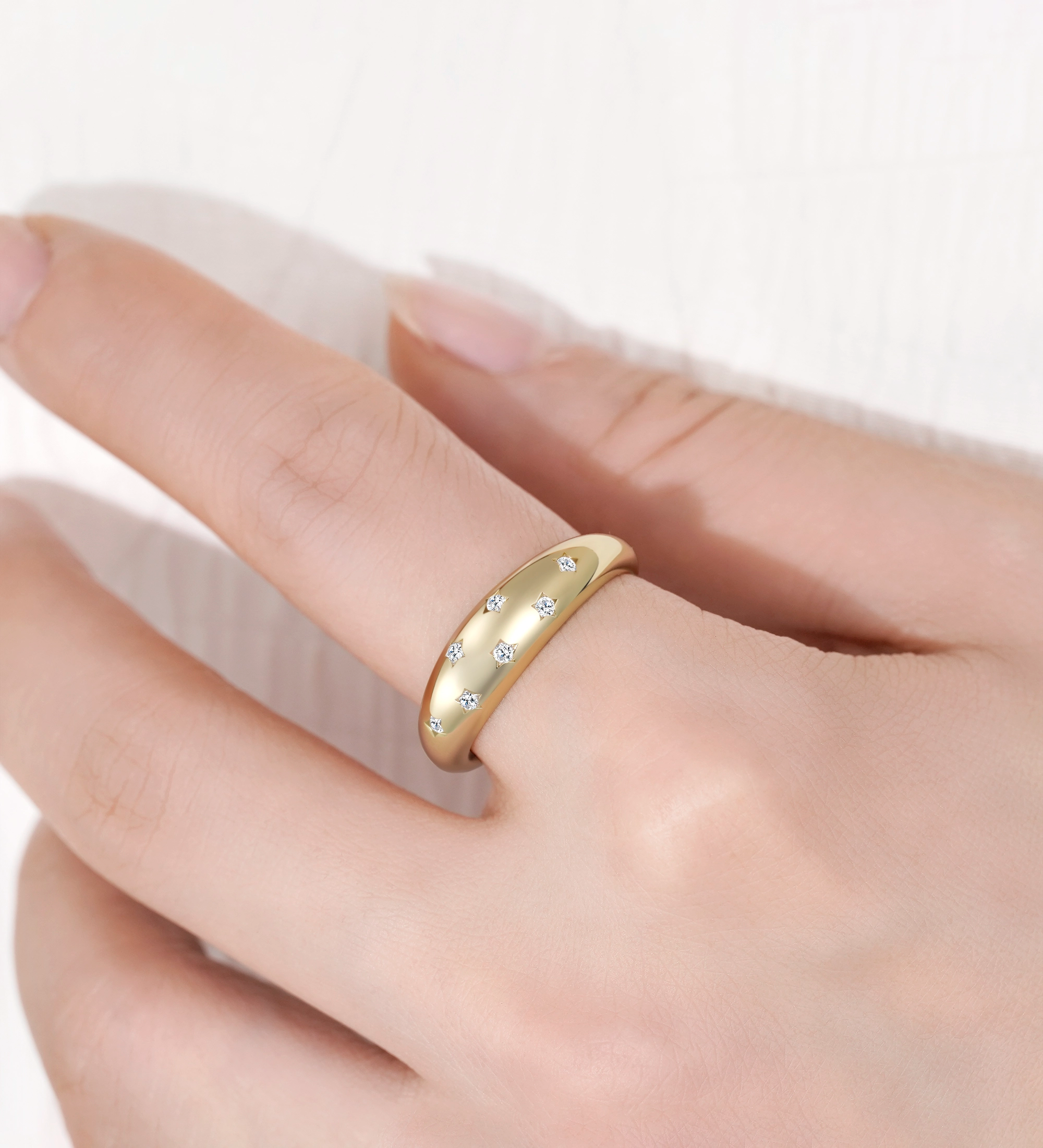 Angels Mossianite Dome Ring Gold