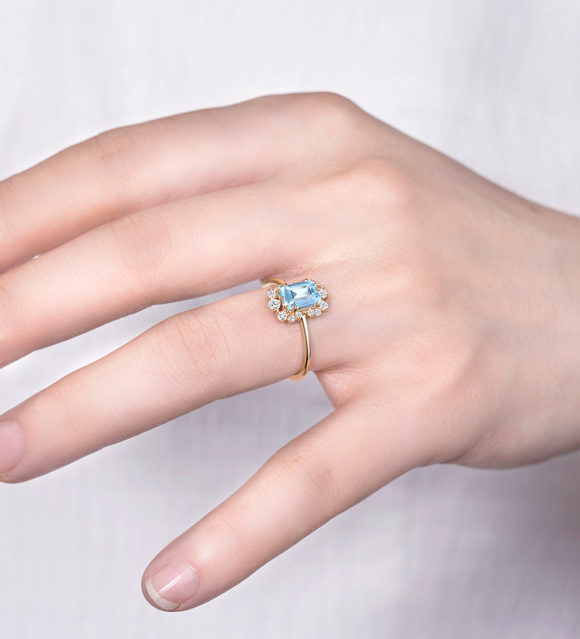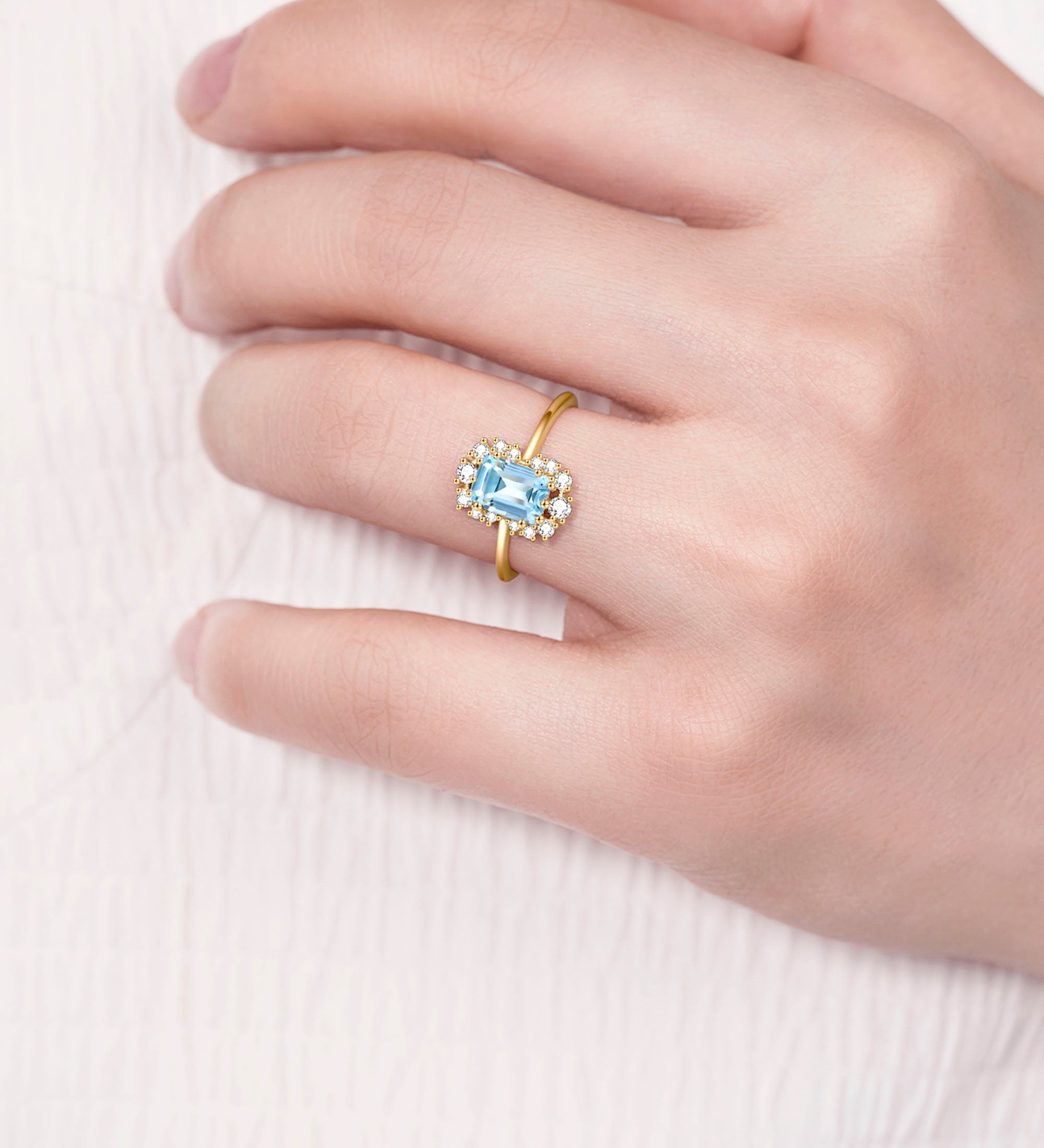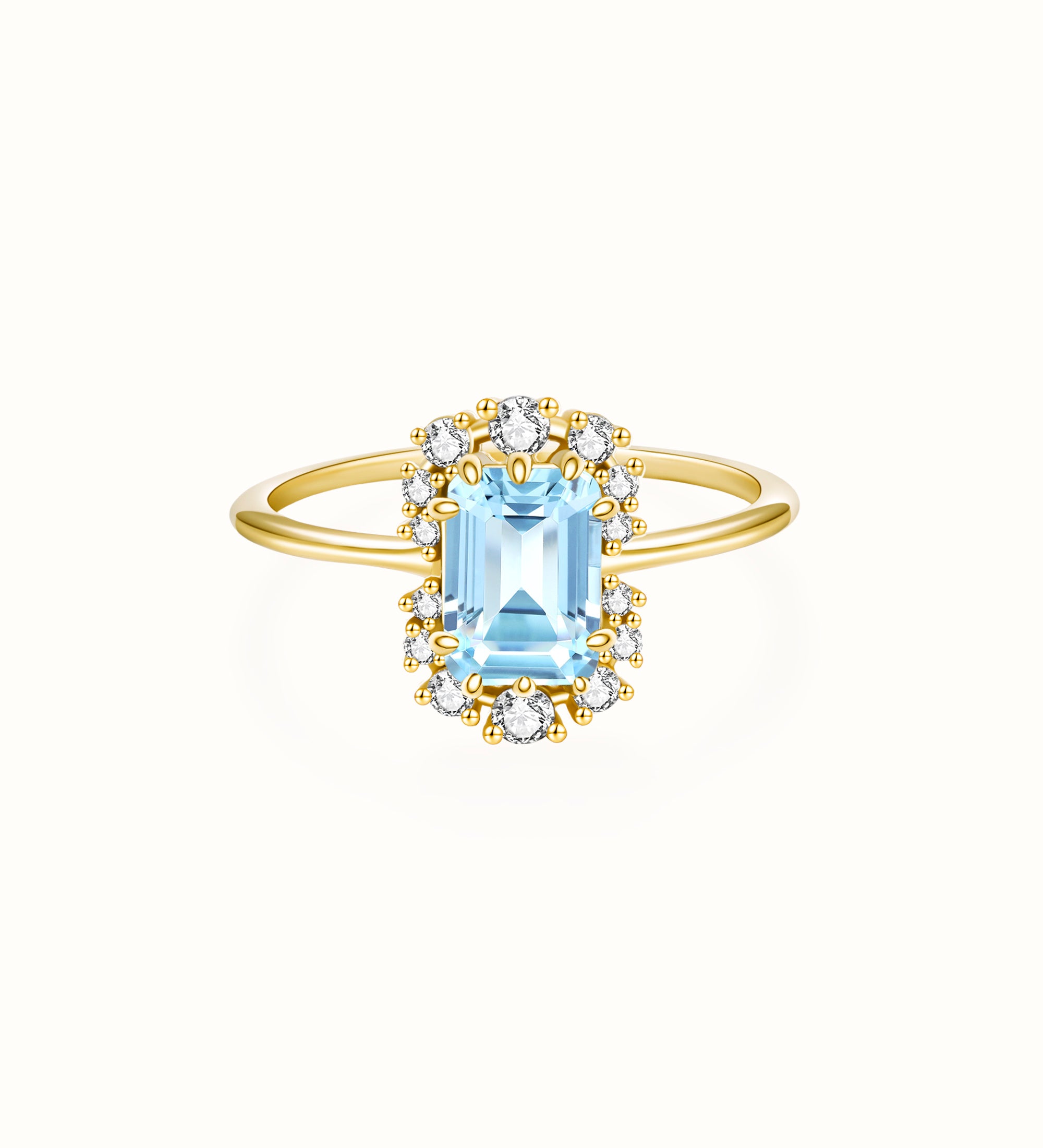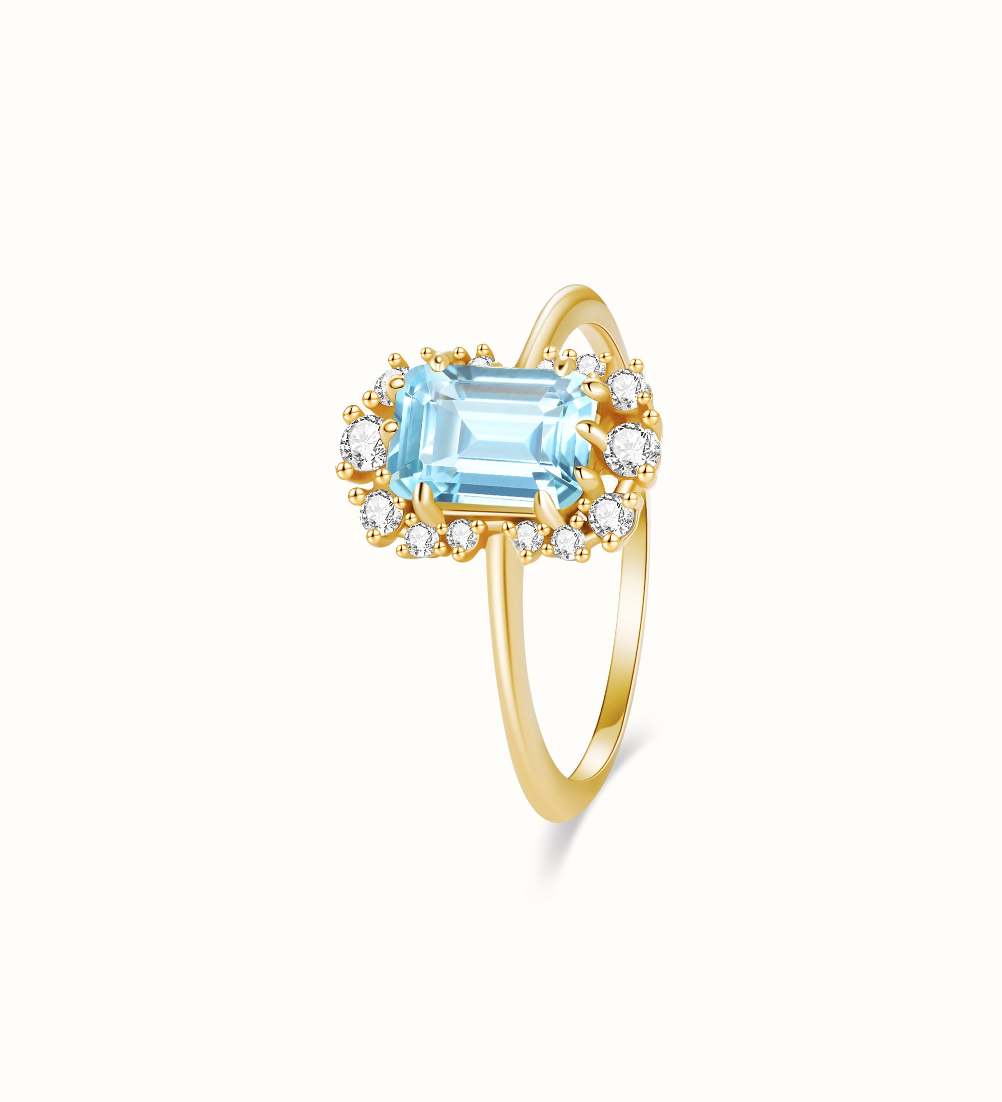 Natural Topaz and White Zircon Halo Ring in 10k Solid Gold – A Touch of Luxury You Deserve