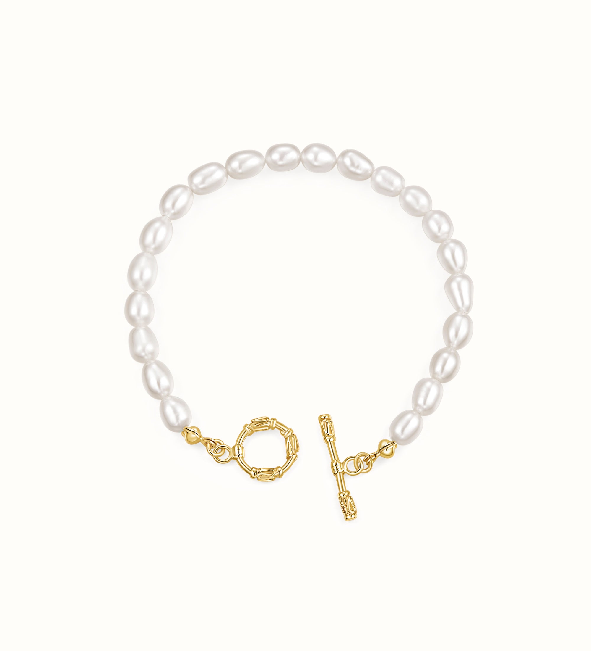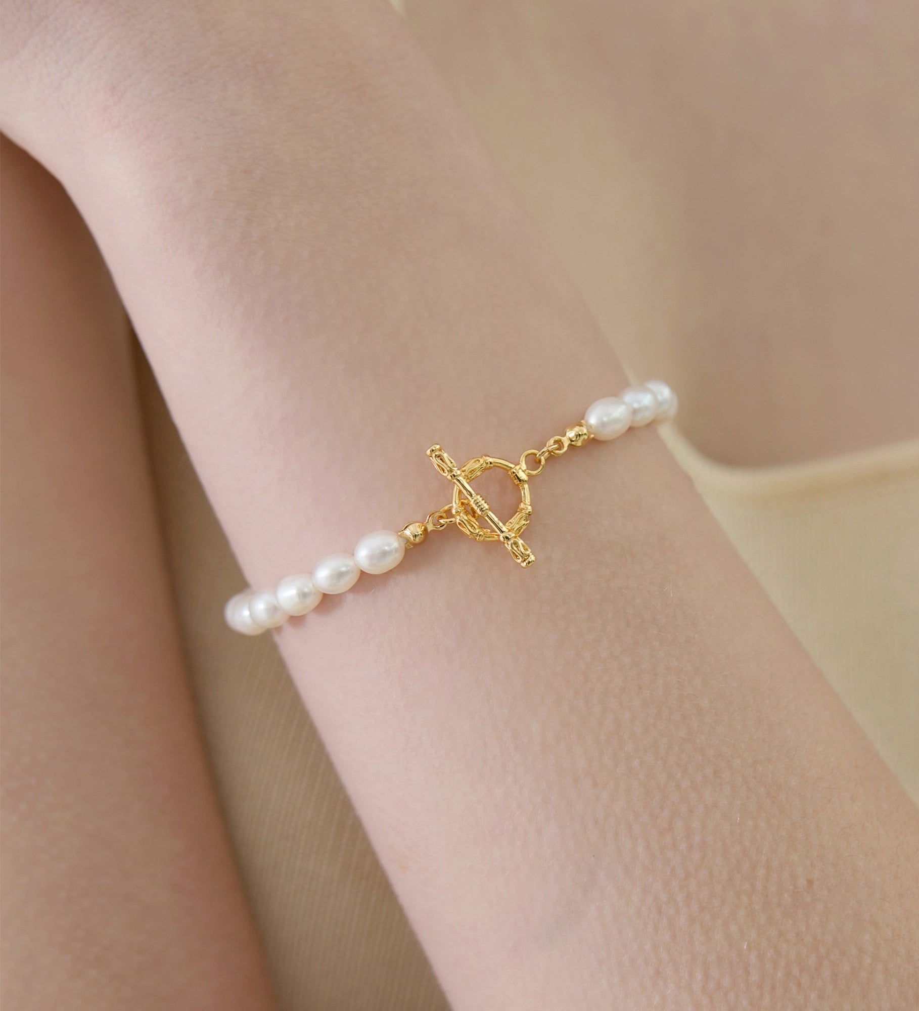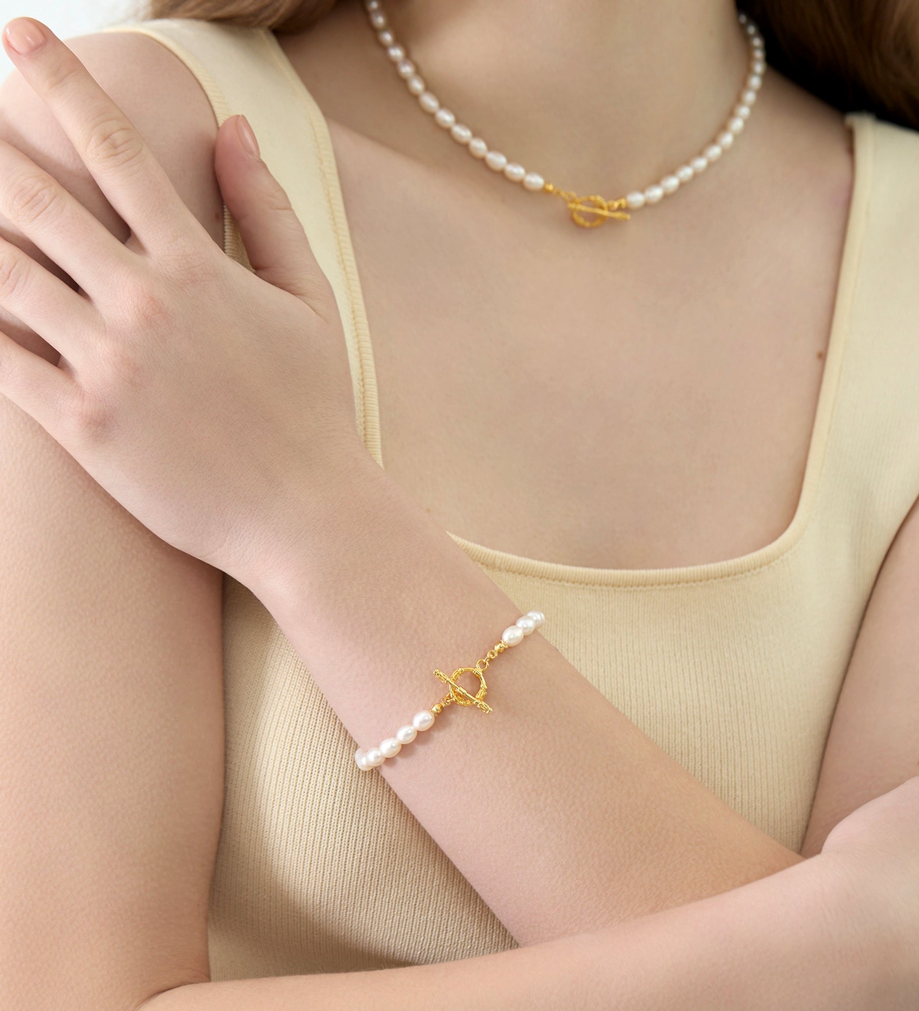 Imagine a piece of jewelry that goes with everything—this is it. The versatile design of our Gold Pearl Bracelet means it pairs perfectly with your favorite casual or formal outfits. The 6.75-inch length fits comfortably, and the toggle clasp is both stylish and secure. Whether you’re dressing up for a night out or adding a little sparkle to your everyday wear, this bracelet is your new go-to. It’s not just an accessory; it’s the finishing touch that makes you feel complete.