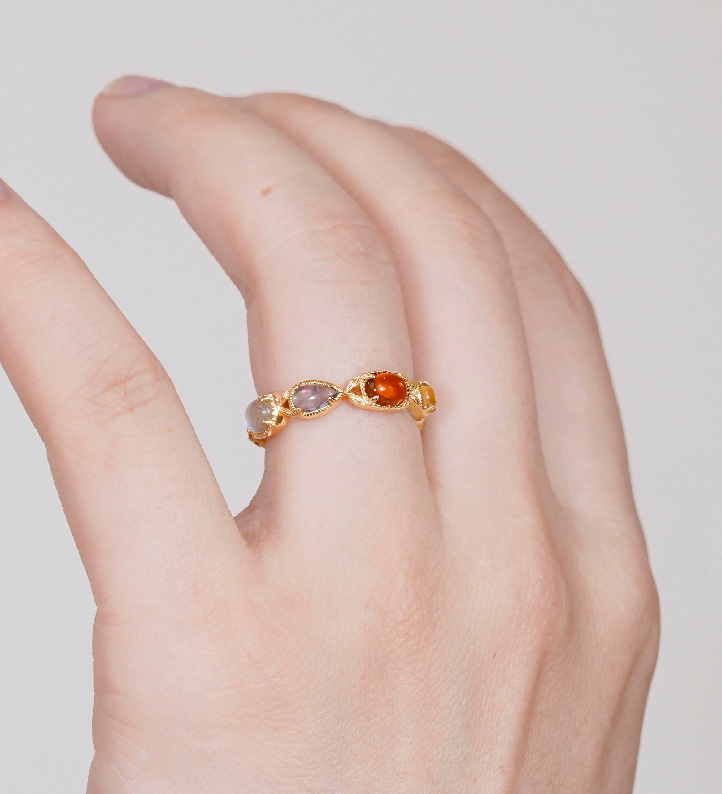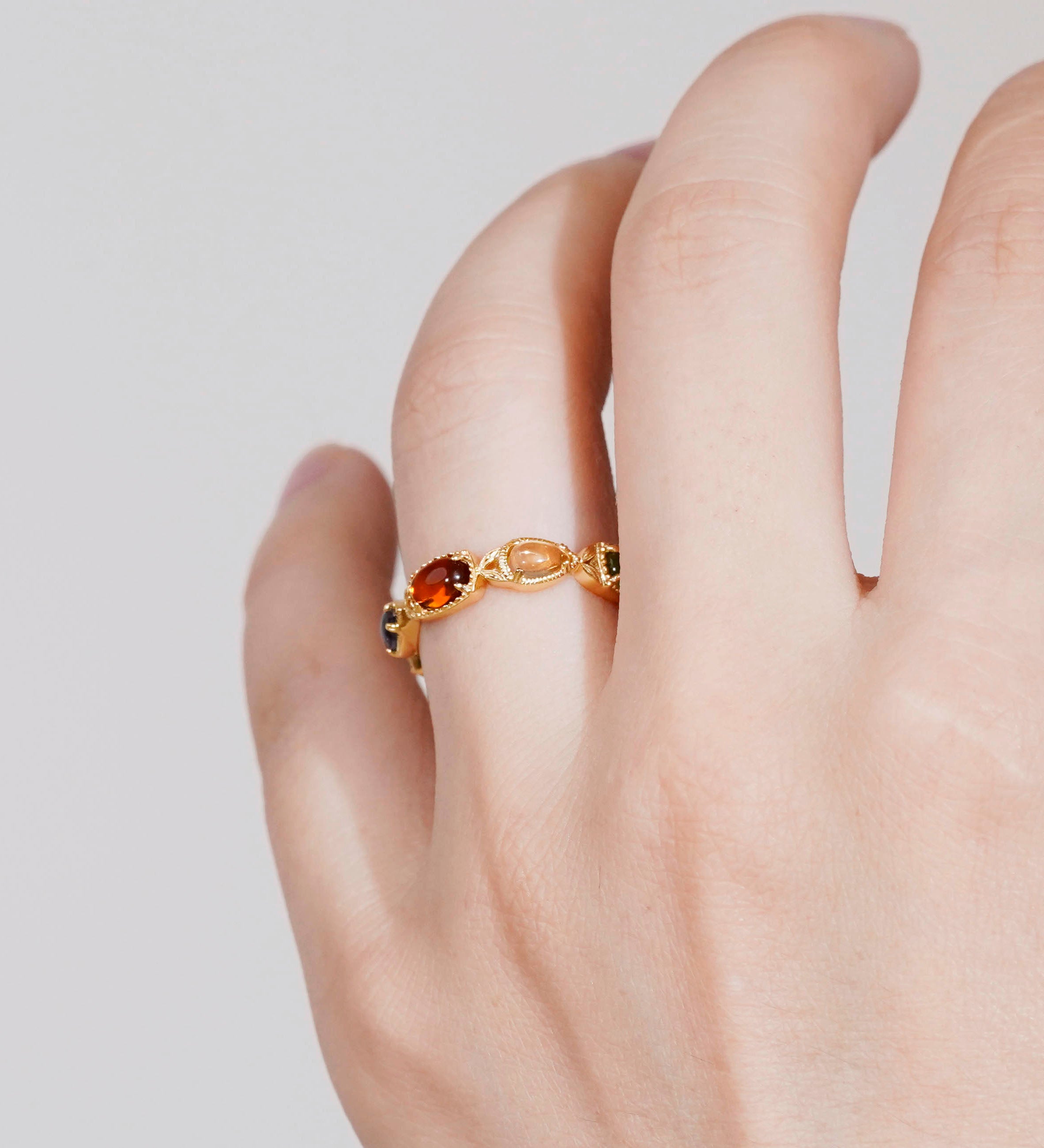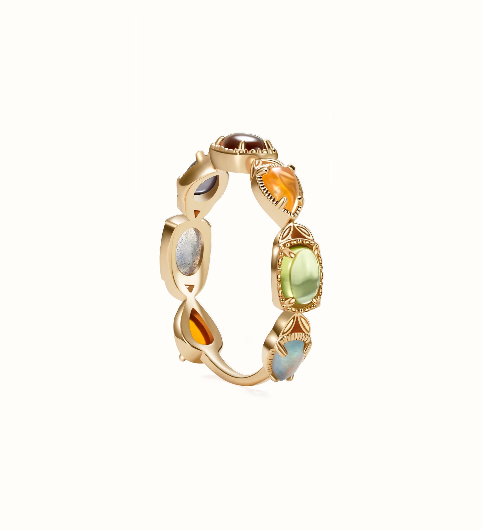 Unveil the splendor of the natural world with our Multi Gemstone Ring, a masterful composition of six unique gemstones each selected not only for their visual allure but also for their profound symbolic meanings. Crafted in radiant 10K solid gold, this ring celebrates the interconnectedness of life and the distinct energies each stone brings.