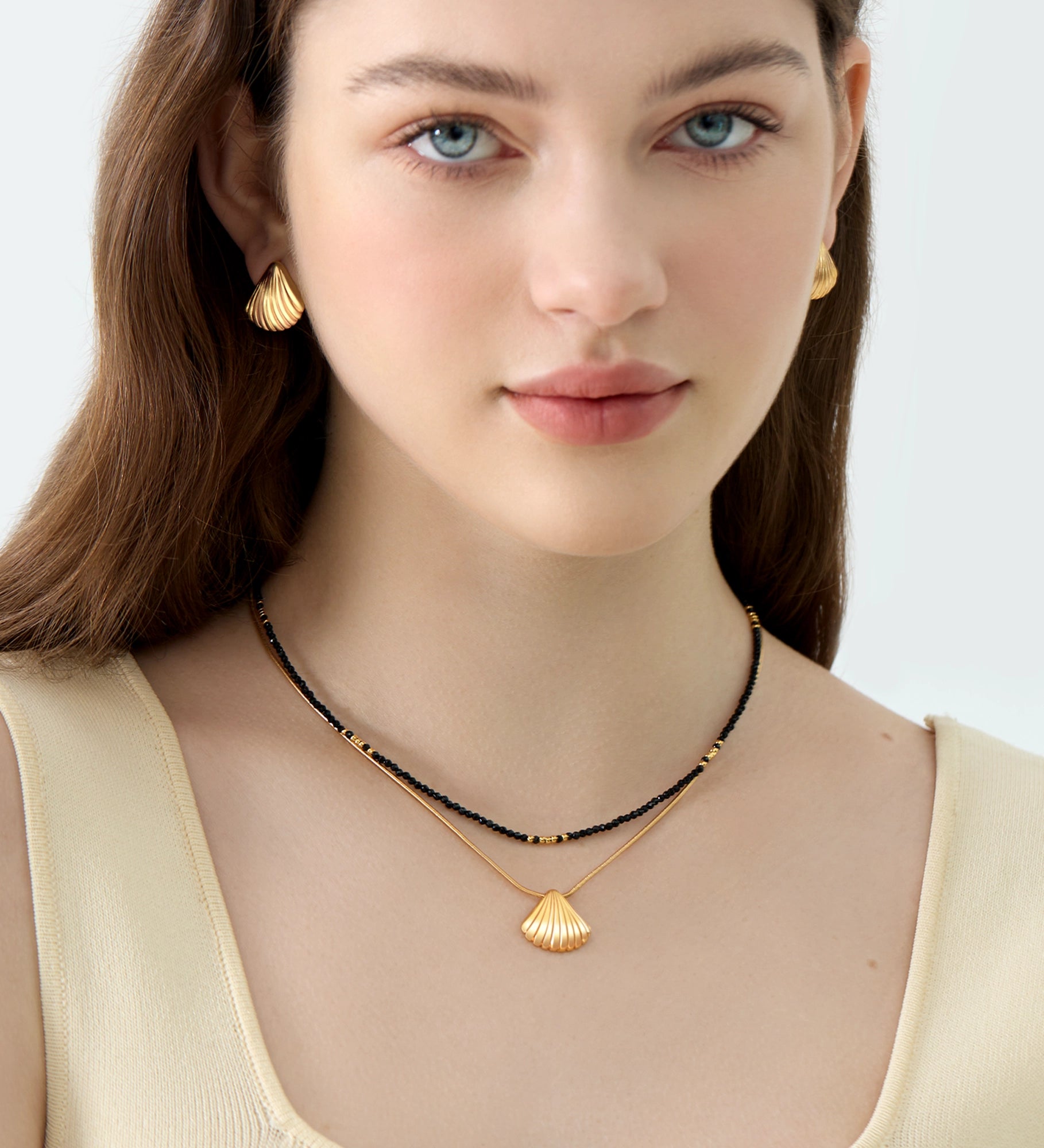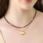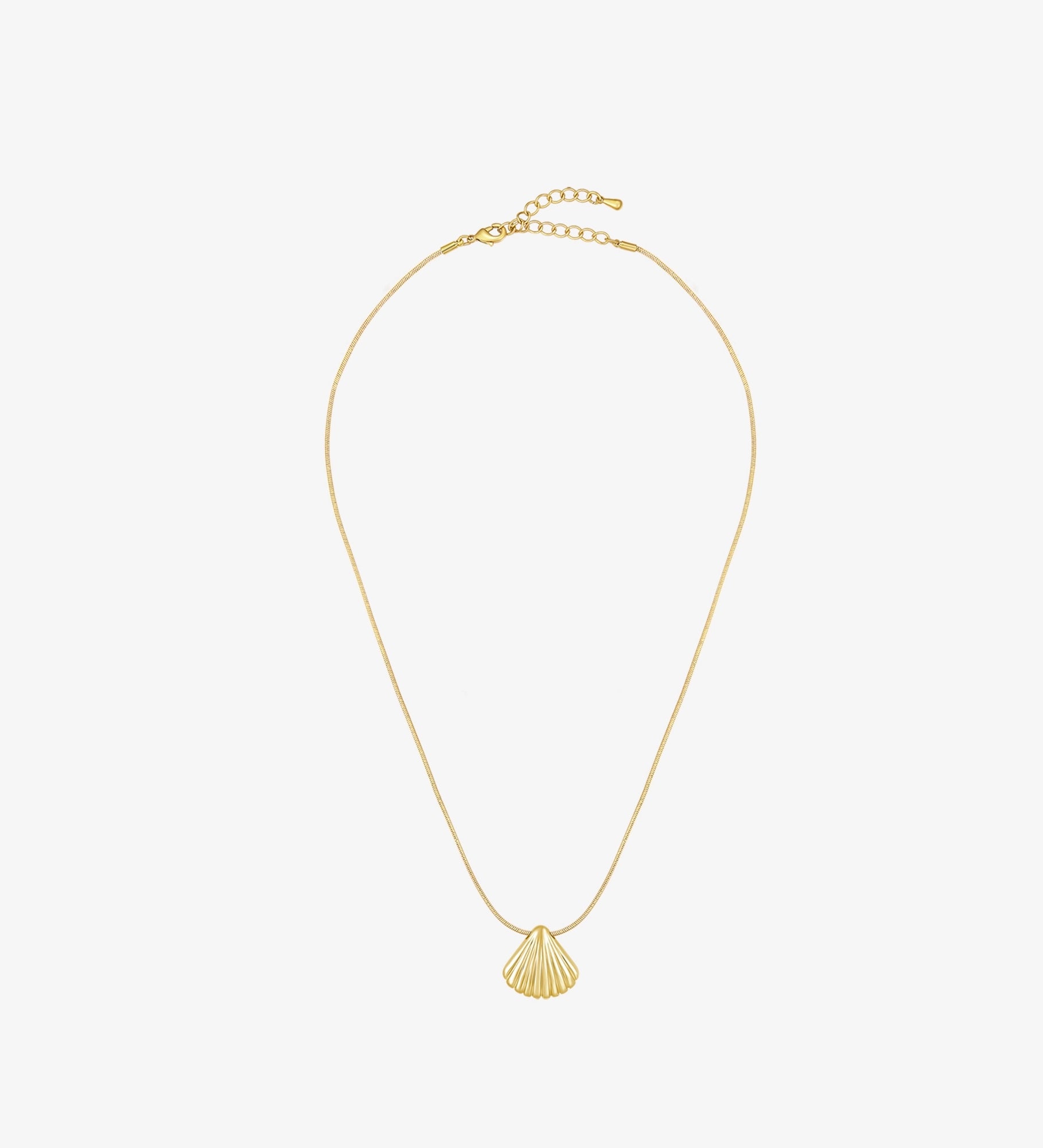 Drift into a world of serene elegance with the Miwanna Shell Pendant Necklace. This timeless jewelry piece, crafted in 18K yellow gold plated on brass, captures the essence of the ocean. The elegant shell pendant makes it a refined and nature-inspired accessory.